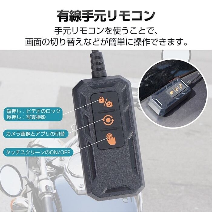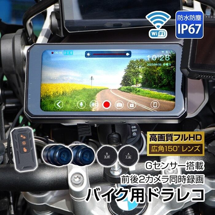 バイク用ドライブレコーダーは、前後にカメラを搭載し、同時録画が可能です。