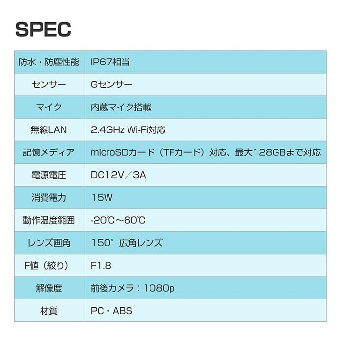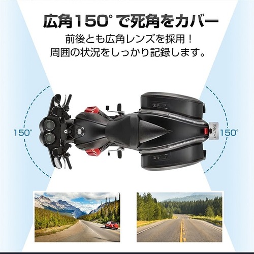 高画質で広角150°のレンズにより、死角を軽減し、安全なツーリングをサポートします。
