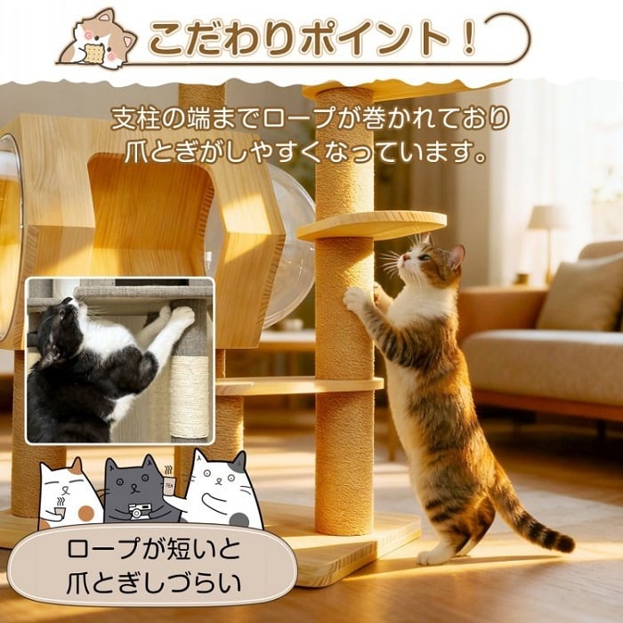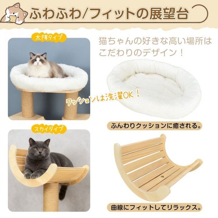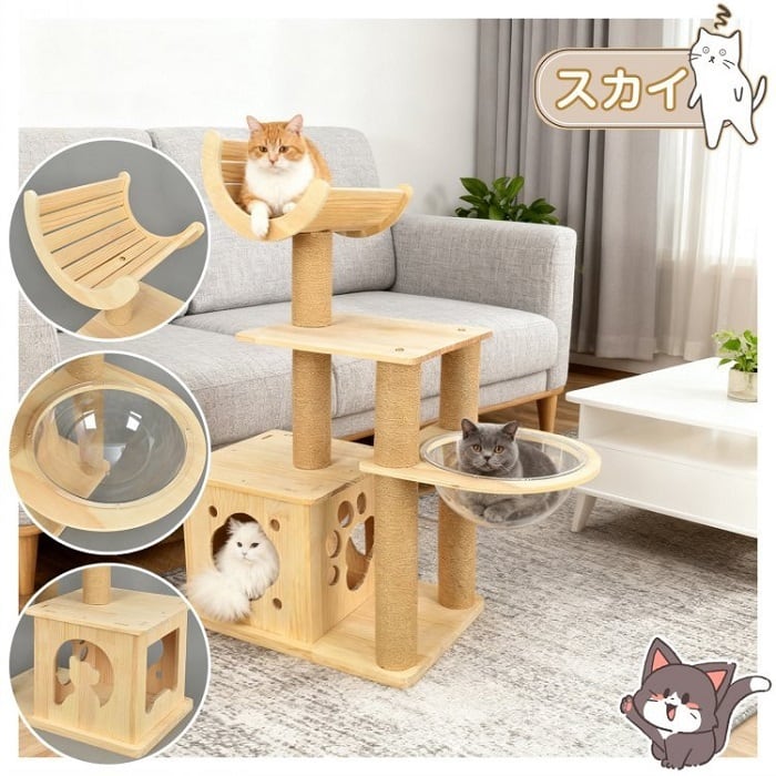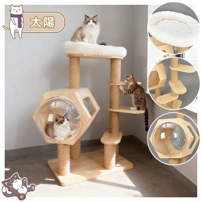 天然木を使用したキャットタワーは、猫のための理想的な遊び場と休息スペースを提供します。