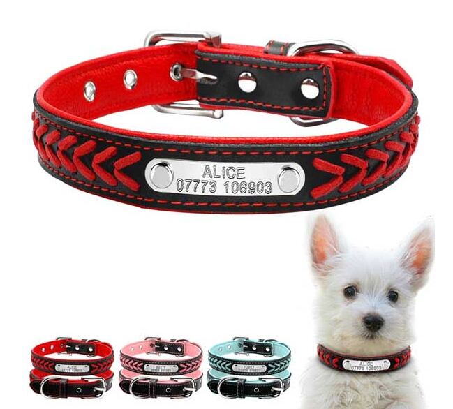 お名前と電話番号入りプレート付き☆お洒落な編み込みドッグカラー 名前・電話番号刻 迷子防止の首輪 犬用首輪 愛猫用首輪 ドッグカラー 迷子札