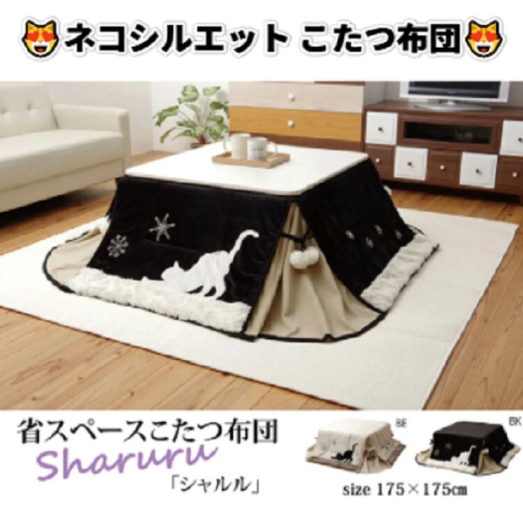 人気のネコ柄のコタツ布団です。ネコの柄をシルエット調にし、雪の結晶はプリントではなく、刺繍で表現することで、甘くなりすぎず、シックな雰囲気に仕上げました。表地には耐久性に優れ、しっとりとやわらかな短毛のマイクロファイバー生地を使用しています。裏地には軽くて保温性の高いフリースを使用しています。省スペースタイプで角が膨らまず、お部屋を広く使えます。薄手なので折りたたんでもかさばらず、コンパクトに収納できます。部分暖房のコタツは電気代もおトクです。